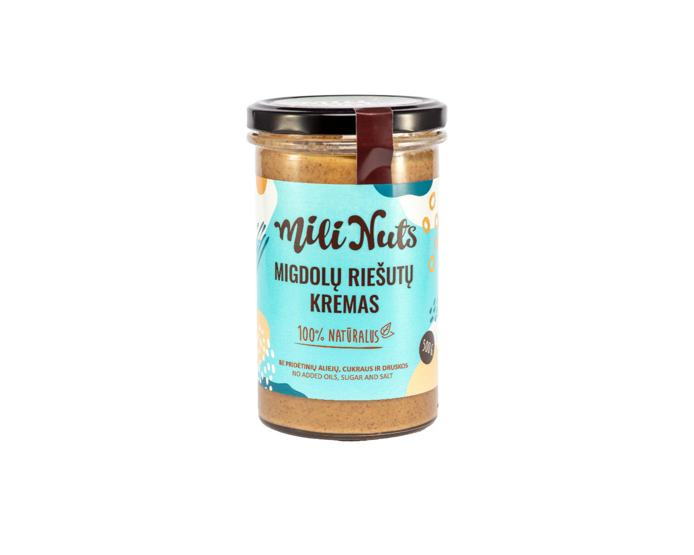 Švelnus ir natūralus „MiliNuts“ migdolų kremas – tai tikras sveikų riebalų, baltymų bei skaidulų šaltinis. Pagamintas tik iš 100 % skrudintų migdolų, be pridėtinių aliejų, cukraus ar druskos.