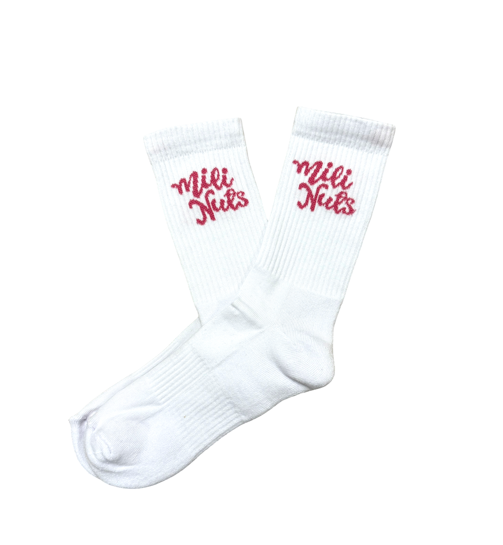 Baltos, klasikinio dizaino moteriškos sportinės kojinės su išsiuvinėtu rožiniu MiliNuts logotipu – stilingas ir patogus pasirinkimas kiekvienai dienai. Minkštas audinys su elastanu užtikrina komfortą, o sustiprintos vietos ties pirštais ir kulnu prailgina dėvėjimo laiką.