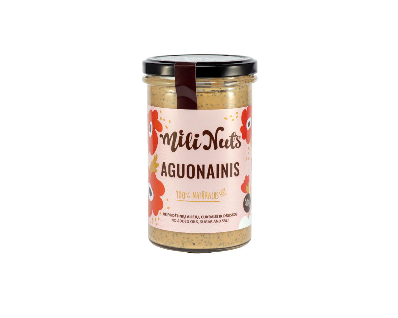 Išskirtinis skonių derinys – „MiliNuts Aguonainis“ sujungia švelnius anakardžius su aguonomis. Natūraliai salstelėję riešutai ir subtilus aguonų traškumas sukuria unikalų skonį, kuris primena tradicinius desertus, tik be jokių pridėtinių aliejų, cukraus ar druskos.