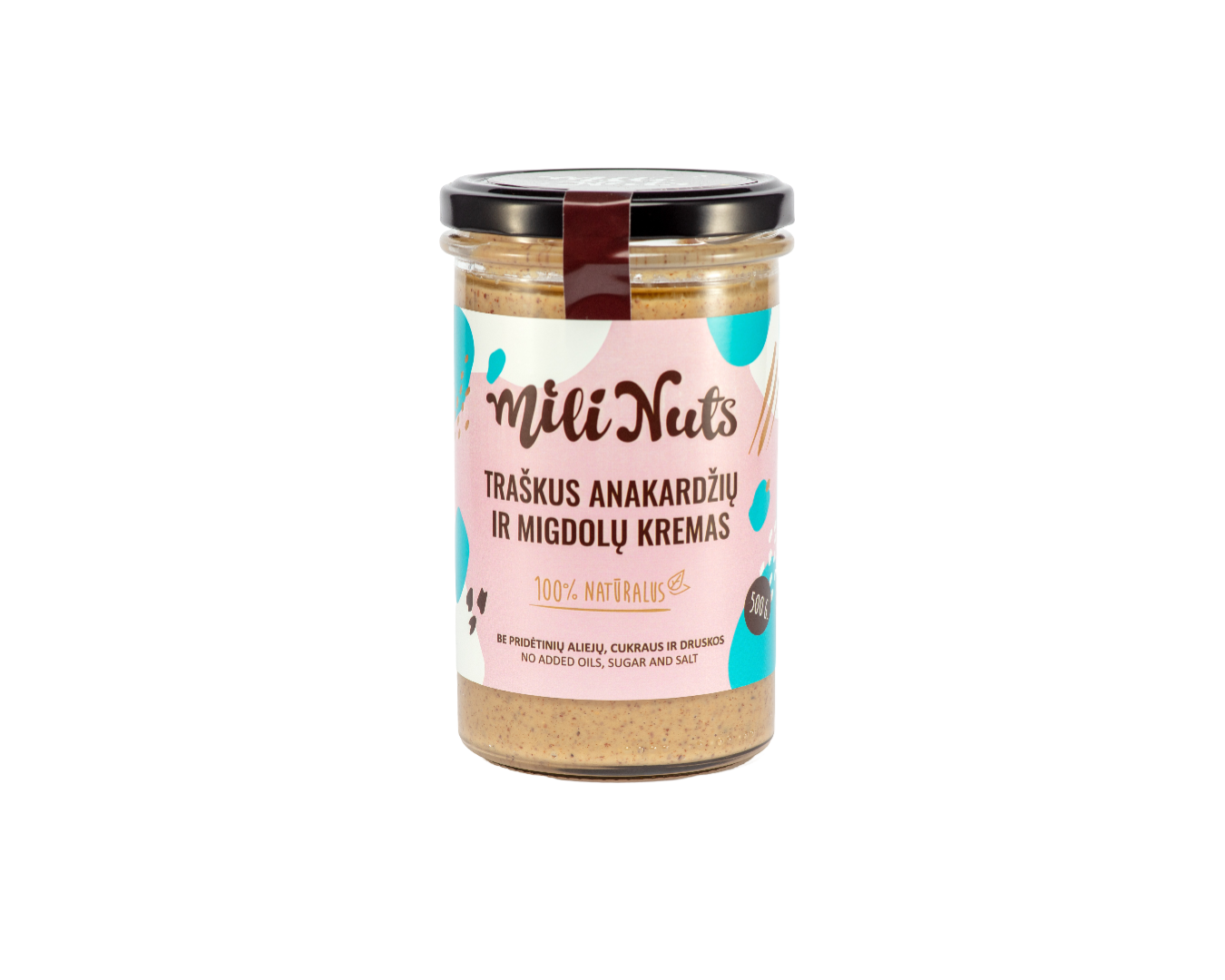 Traškesnis dueto variantas! Šis kremas pagamintas iš skrudintų anakardžių ir migdolų, o kremišką pagrindą papildo traškūs riešutų gabaliukai. Maloni tekstūra suteikia dar daugiau skonio ir pasimėgavimo kiekviename šaukšte.