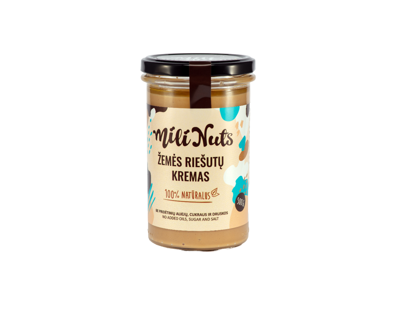 Natūralus ir kreminis „MiliNuts“ žemės riešutų kremas – tai tikras baltymų, skaidulų ir gerųjų riebalų šaltinis. Jokio pridėtinio cukraus, aliejų ar druskos – tik 100 % skrudinti žemės riešutai, sutrinti iki tobulai švelnios konsistencijos.